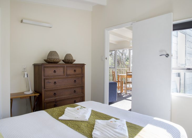 An original private kiwi bach now a popular one bedroom self contained unit with amazing views. Enjoy the vista across the Punakaiki River towards the sea. Queen bed with sofa in living area. A compact bathroom with walk in shower, all newly renovated. Well equipped kitchenette. Ranchslider doors open onto the private deck.